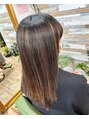 カット、ヴァリジョアマグネット縮毛矯正。毛先とボリュームのメンテナンスカット。ブリーチハイライトの履歴のある髪も、柔らかく、滑らか、ツヤツヤに。極上ツヤツヤ柔らか縮毛矯正☆