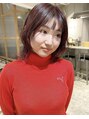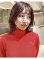 ボブベースのヘアーに顔まわりを切り込んだボブウルフ*カラーは暖色系でブリーチなしでもできるレッドバイオレットカラー*