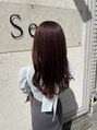 可愛いボルドーカラー!カシスピンク、カシスレッド系です!艶もでてお肌もワントーン明るく見えてストレートでも巻き髪でも可愛い人気のスタイルです!ブリーチしても良しブリーチなしでも出せるレッド系がオススメです!