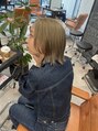 ブリーチ2回~黄色が、少し無くなるまでリフトアップ☆退色まで綺麗になるように薬剤MIXしてベージュをオンカラー☆外ハネしやすく収まりやすいようにカット☆