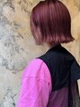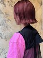 こっくりしたボルドー系は、大人女性に人気のカラーです◎退色はキレイなピンクはなります!ケアブリーチでキレイに育てたハイトーンなのでパサついて見えにくのがポイントです◎ハイトーンピンク/ボルドーカラー/ケアブリーチ/前髪無しボブ