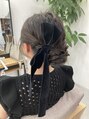 ベロアのリボンをメインにヘアスタイルはあまり大きくせずに、少しまとめてふんわり下めでまとめました。リボンがとっても可愛いです!