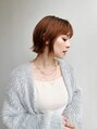 顎くらいの大人ショート、ミニボブ。オレンジベージュカラーで、透明感と柔らかい印象になれます。オイルバームを髪全体に馴染ませるだけのツヤ髪になれる簡単スタイリング。