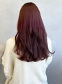 - ブリーチなし暖色カラー*ピンクバイオレットコテ巻きウェーブ
