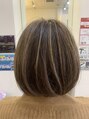 透明感が出るように全体的に細かくハイライト。グレージュ系カラーでくすみ感をプラス