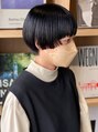 前髪とサイドを繋げず重いラインで仕上げた変形マッシュショートです。