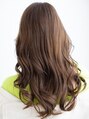 ふわっと波巻きロングスタイルです。全体的に重めのシルエットにし、巻いた時のふんわり感を重視しています。全体が重めのシルエットに対し、前髪をセンターで作ることで抜け感ができて、重くなり過ぎないスタイルに仕上げました。スタイル名