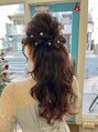 ロングのハーフアップです。パールピンをつけてより華やかになりました。