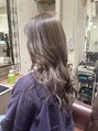 細いハイライトを入れてから、ラベンダーアッシュで染めました。