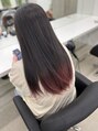 全体をブルーブラックカラーで染め、毛先に黒ピンクを入れたスタイルになります!ブリーチの回数や抜け具合によって色味等は変わりますのでまずは是非ご相談ください!