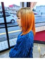 根本と毛先で色が違うルーツカラー。カラーの残留を考慮して根本はシルバー系で中間~毛先は彩度の高いオレンジの配色でカラーリングさせていただきました。