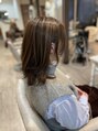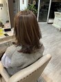 細めに入れたハイライトで立体感、透明感をだし、表面の白髪ぼかしも同時に叶います。髪質改善カラートリートメントで艶と最高の手触りに。カラーが綺麗に見えるようにカットでの毛量調節はスキ鋏は一切使わず造る事でスタイルに艶が出る事にこだわっています