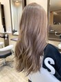 ブリーチ後にミルクティーベージュで透明感を出しました。