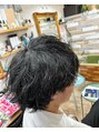 パーマ、シャンプーブロー。メンズスタイル。3回転ぐらいのクルクルパーマ。マットワックスで仕上げてワイルド系、ウエットワックスで色っぽく、スタイリング剤次第でどちらも行けます。