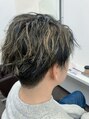 メンズスタイルのメッシュです。メッシュキャップを使用してのブリーチになります。