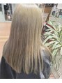 ブリーチカラー全体的にブリーチをして、色を抜いてからベージュでオンカラーしてます!もちろんブリーチもダメージレスブリーチに変更もできますので、カウンセリングの際お伝えください。