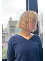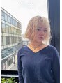 ハイトーンのボブにほつれる質感のパーマを。前髪にもしっかりとカールをつけました。スタイリング剤をたっぷりと揉み込んだら、とても可愛いです。