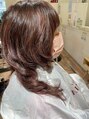 暖色ワインレッド韓国ヘアレイヤーカットピンクブラウン髪質改善