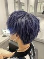 緑に色落ちしないワンブリーチネイビーヘア/ホットペッパービューティー