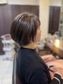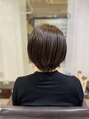 髪質改善・予防美髪イルミナカラー、透明感のでるカラーになります。サプリトリートメントと炭酸のヘッドスパで髪のケアと頭皮のケアができます。ショートボブで、軽さのあるスタイルにしています。