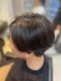 髪質改善・予防美髪イルミナカラー、透明感のでるカラーになります。サプリトリートメントと炭酸のヘッドスパで髪のケアと頭皮のケアができます。ショートボブで、軽さのあるスタイルにしています。
