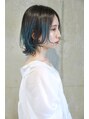 ボブウルフにルーツカラー(根元を染めずに外したカラー)で ディープグリーンに仕上げました。グリーンはグレーとミックスして深みとくすみのあるモードなグリーンに仕上げております。