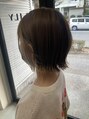 くびれ外はねのミニボブ×インナーカラー!表面のヘアカラーは赤味オレンジ味を消したベージュカラーで、インナーは透け感たっぷりのホワイトベージュです!
