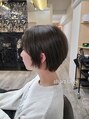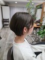 ショートレイヤーにブリーチなしでオリーブベージュをオン。スタイリングは顔周りのアレンジを楽しんで◎ ※カラーは、お髪の状態により、Wカラーが必要な場合がございます。
