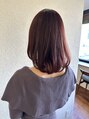 【ライラック】×【コンクローズ】でツヤ感のあるピンクベージュ♪ツヤ感のある暖色系カラーは周りからの評判も◎☆表面に段差を入れて軽やかさアップ☆ミインカールを付けてアイロンで軽く内巻きに☆ツヤ感のあるスタイルに仕上がります♪