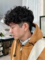 マッシュベースに少し強めにパーマしたスペインカールヘアですサイドとバックは刈り上げてスッキリさせてフロント周りにボリュームを作ってあげてスペインカールっぽさをデザインしてます!ハーフウェットでのスタイリングがおすすめ!