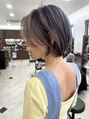 前回のブリーチオンカラーで抜けた髪色にグレージュをオンカラーしてくすみ感を出したスタイル
