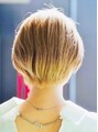柔らかさと丸みのある大人ショート。首元がスッキリ見えるよう襟足を短くしボーイッシュになりすぎないよう、重さを残し丸みを出すことで女性らしいスタイルになります。前髪はシースルーにすると顔まわりが明るくなるのでオススメです。