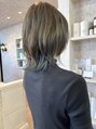 大人気な丸みレイヤーウルフヘア。ふわっと軽いヘアスタイル。は耳かけでスッキリスタイリングでガラッとイメチェンできるので毎朝楽しめます。カラーは透明感グレージュにチラッとブルーのインナーカラーが入ってます。しっかり色が入ってるので可愛い。