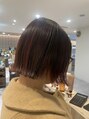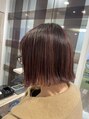 全体に細いハイライトをいれ、ストロベリーピンクをのせました ^ ^ボブスタイルに合う配色です