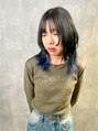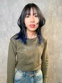 エンドカラーブルー/顔周りウルフレイヤーカット/デザインカラー