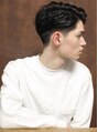 ベースは前髪長めのツーブロックの髪型。パーマをゆるくかけてトップのボリュームと毛流れを作る事でハチの膨らみを解消しています。ツーブロック部分にグラデーションをつける事で伸びてきても気になりにくくした30代40代の方にもオススメの大人の髪型です。
