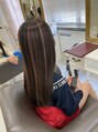 実は表面の毛だけブリーチして色を染め足しているのでハイライトではありません。ポイントカラーというほうが正しいかも。このカラーのいいところはハイライト部分に綺麗な色を出せるところです。