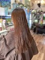 フロントからもみあげにかけてはスライドカットで短く流行りの韓国風前髪にして縛った時に顔周りにそう感じに毛束が落ちるので可愛いです。カラーは白髪が少し気になるのでピンク系の白髪染めで染めました♪