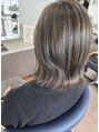 オリーブベージュで赤みを取り除き、細めのハイライトで髪の毛に透明感と立体感をプラス。全体を外ハネベースでカットしてガーリーな仕上がりに♪
