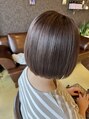 耳掛けしやすいショートボブ♪赤みを消したカーキアッシュで透明感をプラスしました♪