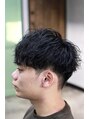 メンズの2ブロックショートをベースにツイストスパイラルをかけたスタイル。とても相性がいいのでセットもスタイリング剤をとって振るように髪につけていただければ簡単にセットできます。