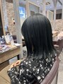 濃いめのブルーカラーで茶色味を無くしたヘアカラーです。