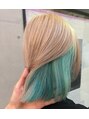 全体をハイブリーチした後、インナーはカラーバターでペールブルーに!ベースはホワイトカラーにしました!メニューにお悩みの方は“フリークーポン”ご利用ください!初めての方もご相談乗ります◎