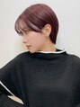 マッシュショートでカット。ブリーチ後ワインレッドでカラーし、アイロンで丸みを作ってスタイリング完了。オイルをつけて仕上げる 学割U24