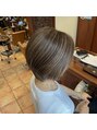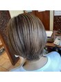 白髪染めを使わず、ご自身の白髪を活かしてカラーリングする白髪リメイクの施術です。ハイライトに見える部分は全て白髪です。白髪を活かしてデザインにすることも可能。白髪が多ければ多いほど透明感が出しやすいです。