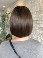 顎と同じ長さのミニボブです!髪の内側にうねりがありますが部分ストレートで毎日の生活の中で扱いやすいように、手入れしやすい髪型をご提案いたしています。カラーは、中明度のラベンダー系でカラーしています。【千葉】