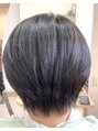 前下がりのショートレイヤーボブ。襟足を軽めのラインにスッキリと。マッシュベースの低めレイヤーで柔らかい仕上がりに。セミロングからのショートへ。