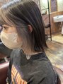 インナーブリーチでホワイトシルバーに!シルバーは2回以上のブリーチです!1回のブリーチの場合はグレージュ系、ダークグレー系は目指せます。ボブにフェイスフレーミング◎!