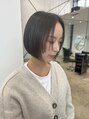 顎ラインのボブスタイルです!少し前下がりでカットしていて、耳にかけた時も長さが揃いやすいようにしています(^^)前髪はセンターパートで少しレイヤーを入れていますが、毛先のぱつっとしたラインを残しておしゃれな印象にしました(^^)