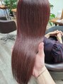 ブリーチなしで作るローズピンク。暖色系は艶感が良く、ストレートスタイルと相性◎ ※カラーは、お髪の状態により、Wカラーが必要な場合がございます。
